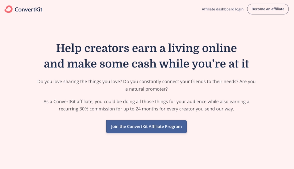 The ConvertKit affiliate marketing program is geared primarily toward their existing users who feel that members of their audience can benefit from the service. Developing an affiliate relationship with existing customers is one of the best ways to ensure quality and longevity in your affiliate program.